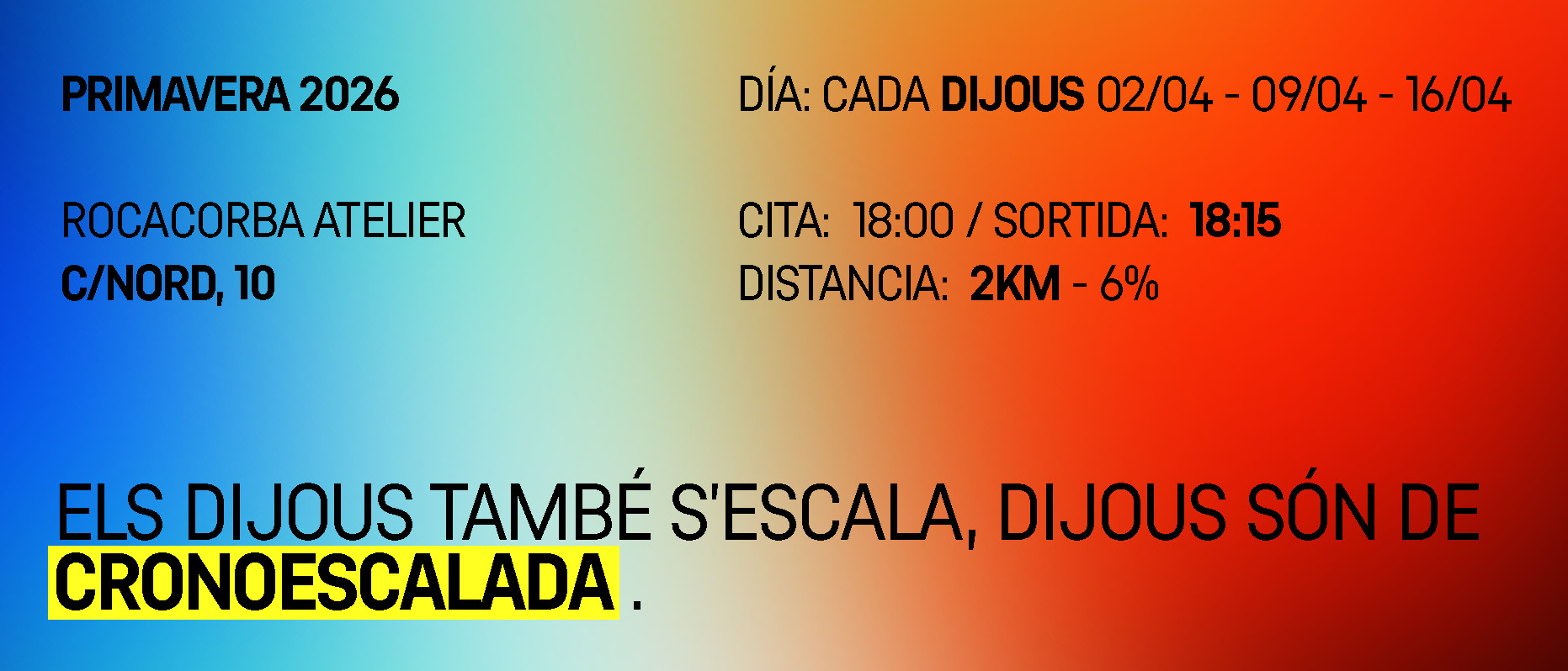 CAT: Dijous de Crono Escalada, desde Rocacorba Atelier volem anunciar una serie de 3 crono escalades al voltant de la ciutat de Girona.